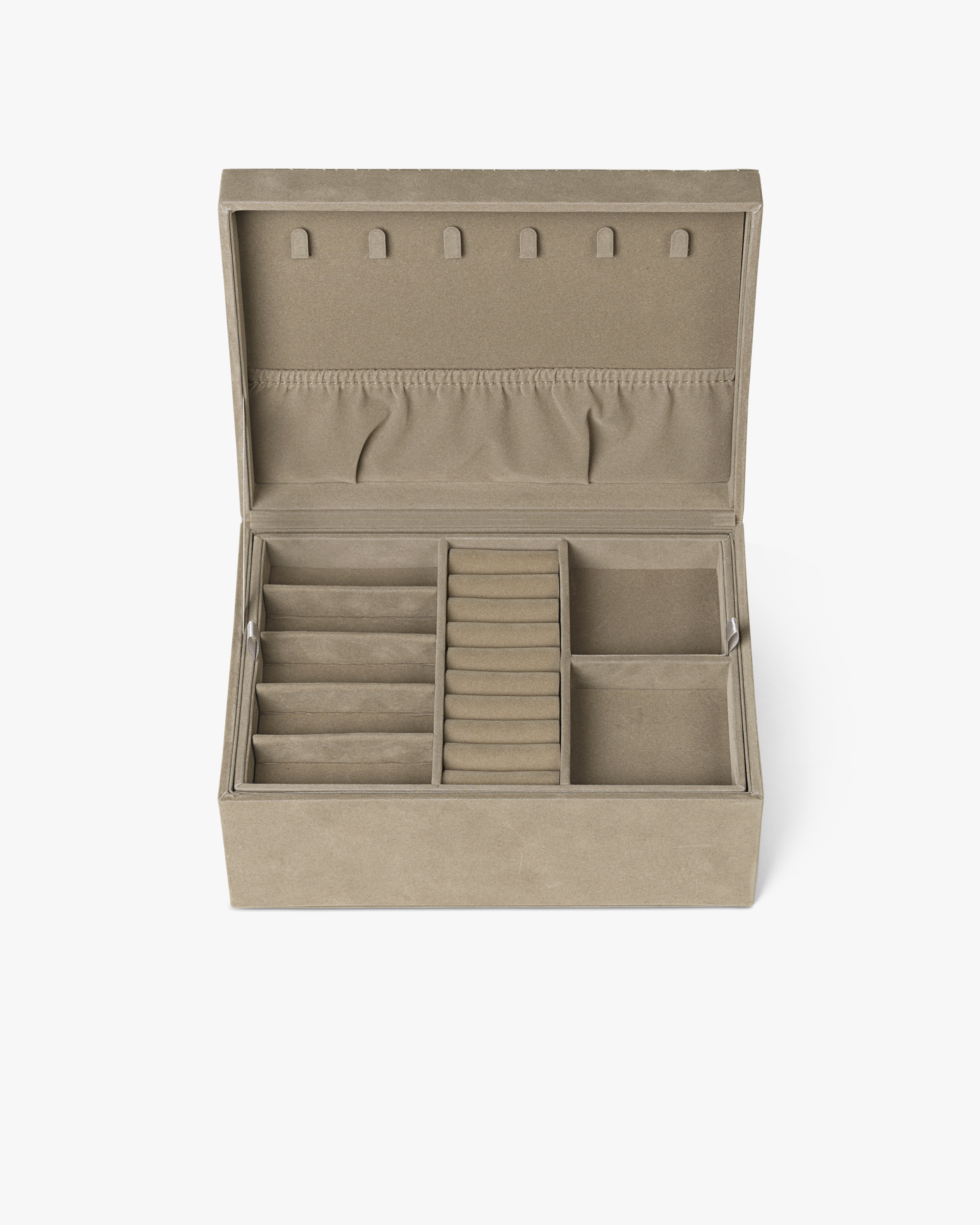 This spacious jewelry box is perfect for storing all of your jewelry. It is designed in velvet and has the DAY ET logo at the front in silver. The jewelry box has a square shape, and it has a magnetic closure. Inside it has several compartments, so it is easy to organize your jewelry.