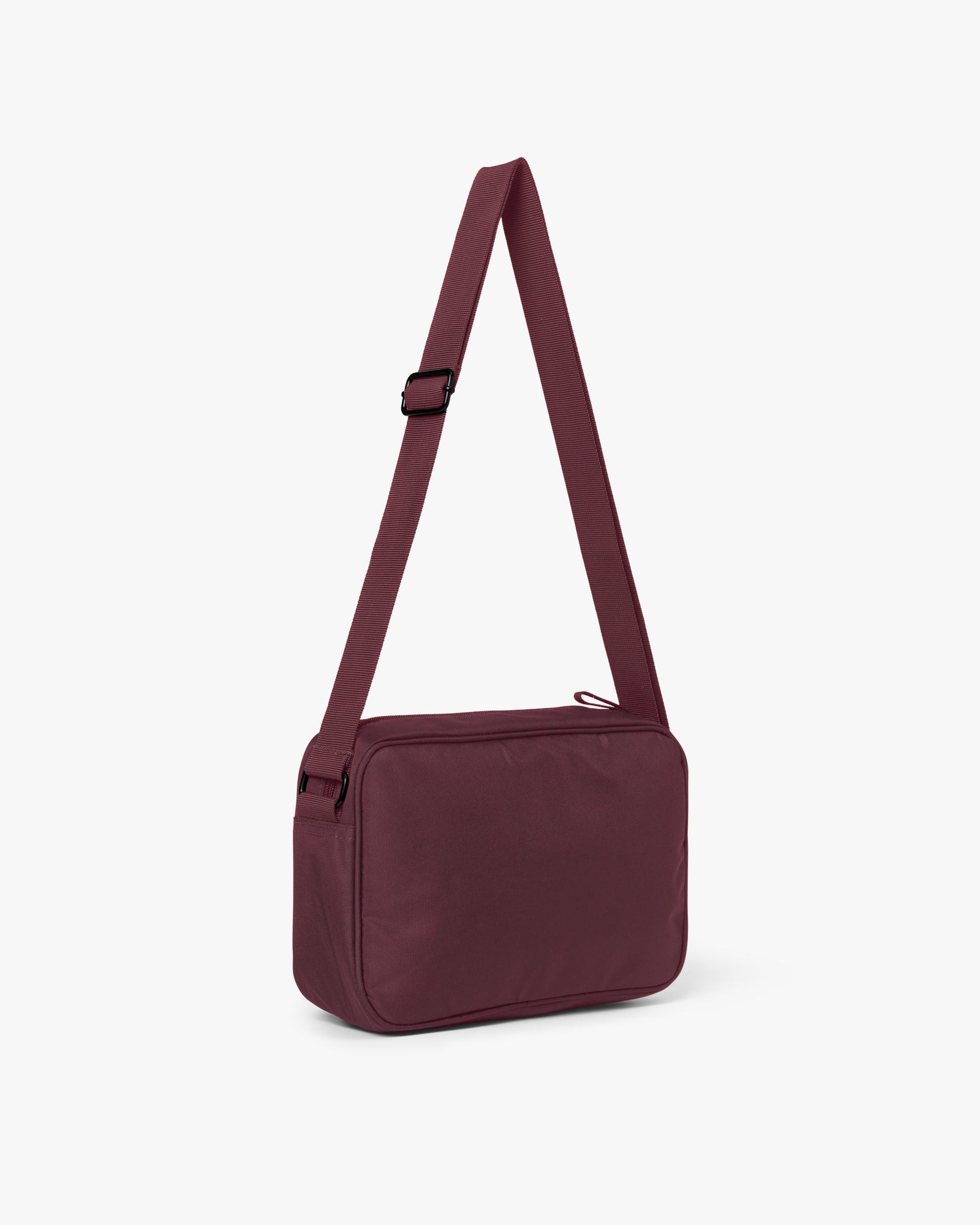 The outer fabric and inner lining of this bag are made of lightweight 100% certified recycled material. It closes with a zipper and features several pockets for organisation of your belongings. The strap is adjustable, allowing you to customise it for a perfect fit. Designed in a tonal look.
