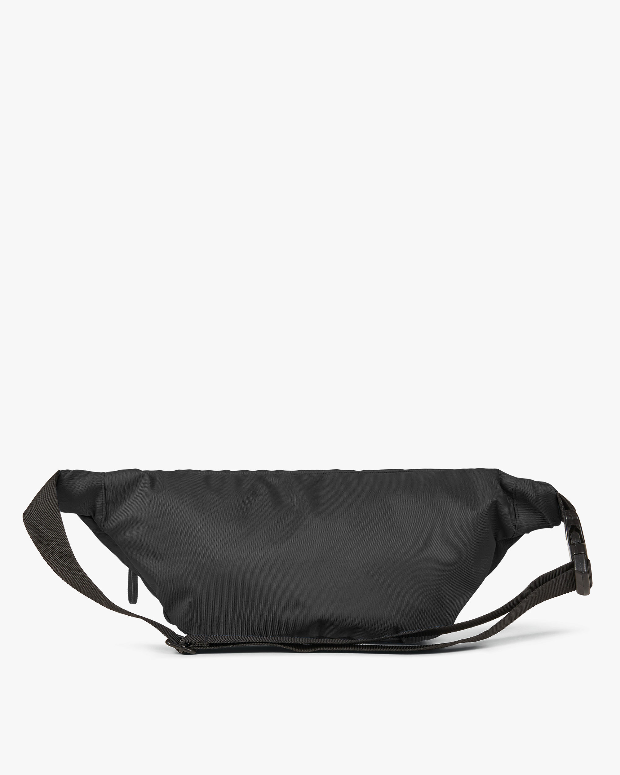 The outer fabric and inner lining of this functional bum bag are made from lightweight 100% certified recycled material. The bag closes with a zipper and features both an inner and outer pocket to help organise your belongings. The adjustable strap with a buckle allows for a customised fit. It can be worn as a crossbody or around the waist.