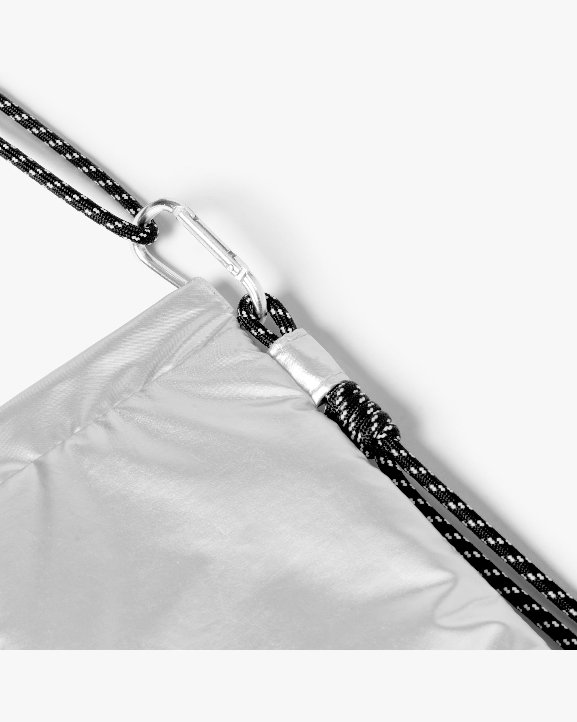 Created in collaboration between DAY ET and A. Kjærbede, this compact bag is designed to protect your sunglasses with style. It features a pinch purse frame closure and an adjustable paracord strap for easy carrying. A carabiner clip makes it quick to attach to a larger bag or remove as needed. The padded construction and sleek silver finish make it a practical and stylish choice for days on the go. The bag’s outer and inner fabric are made from 100% certified recycled materials.
