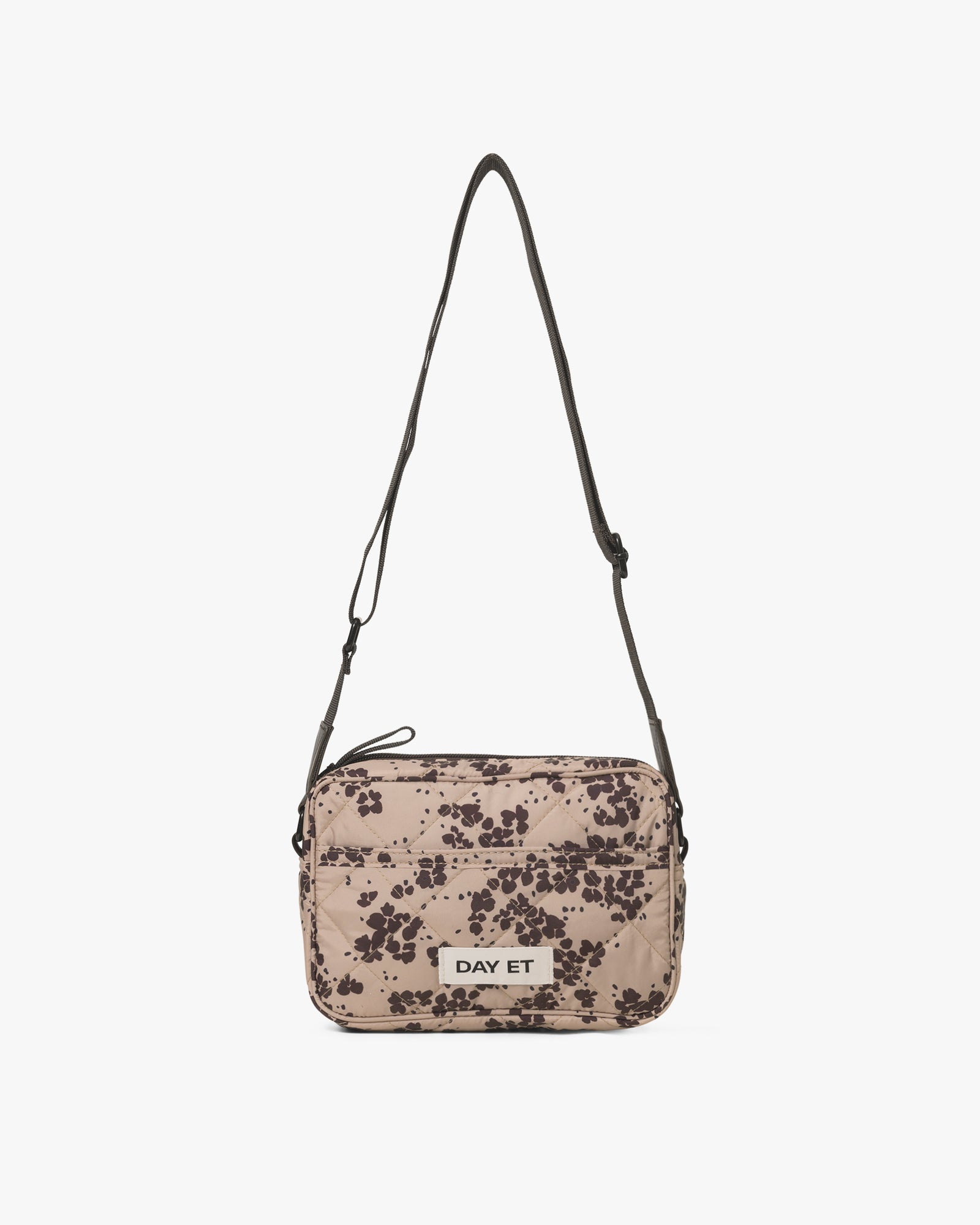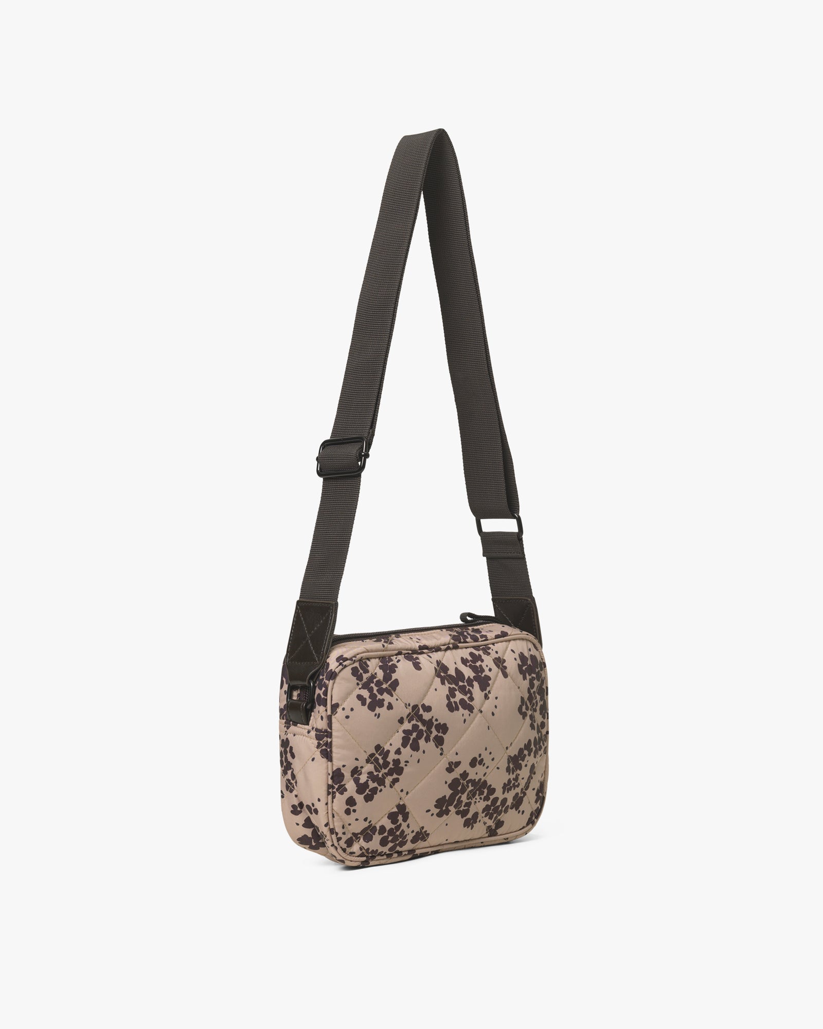 A crossbody bag with an adjustable strap and two inner pockets to keep your items organised. The quilted floral print adds a feminine and stylish touch. It closes with a zip, and the outer fabric and lining are made from 100% certified recycled materials.