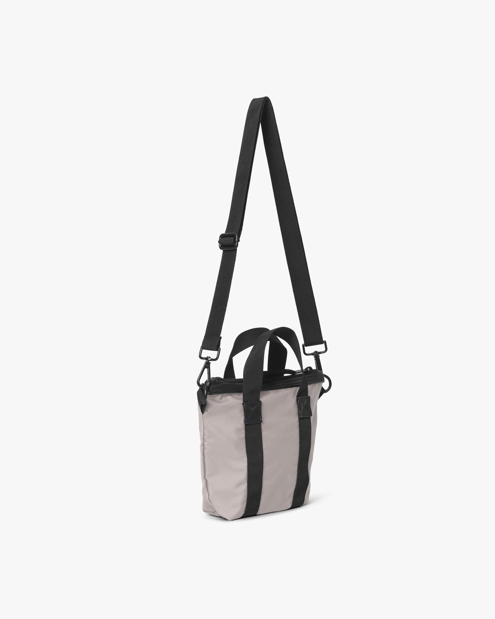 This mini version of the iconic Gweneth Bag is crafted from 100% certified recycled material. It features a small handle and a detachable, adjustable strap for multiple carrying options. Inside, there's a handy pocket to keep your essentials organised.