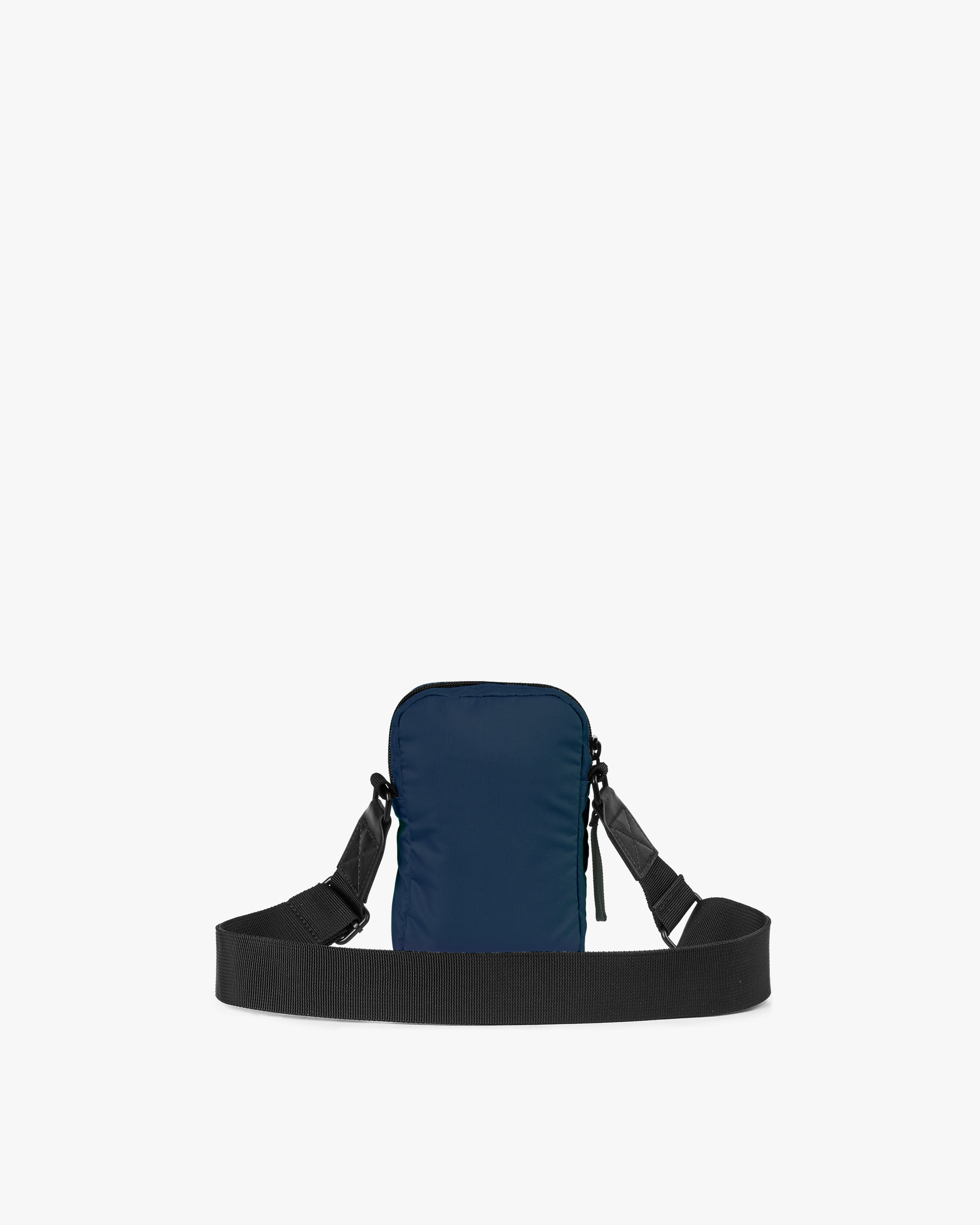 The outer fabric and inner lining of this bag are made from lightweight 100% certified recycled material. It features a zipper closure and includes both an inner pocket and an outer pocket. Additionally, it is equipped with an adjustable and detachable strap.