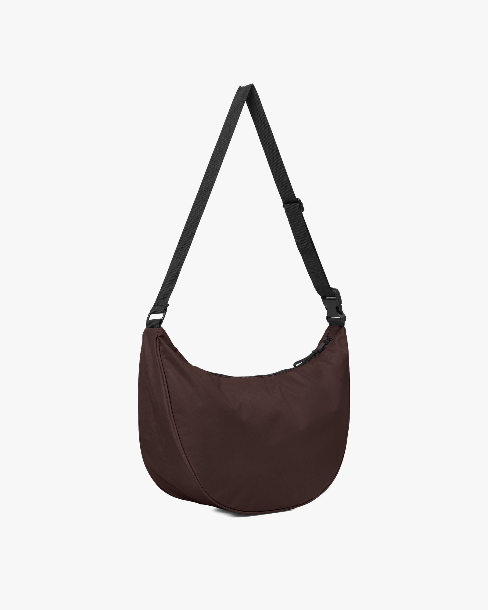 A spacious crossbody bag, perfect for everyday use or travel. Made from lightweight material and finished with an adjustable strap for a custom fit. It closes with a zip and includes an internal zip pocket for smaller items. Both the outer fabric and lining are made from 100% certified recycled materials.