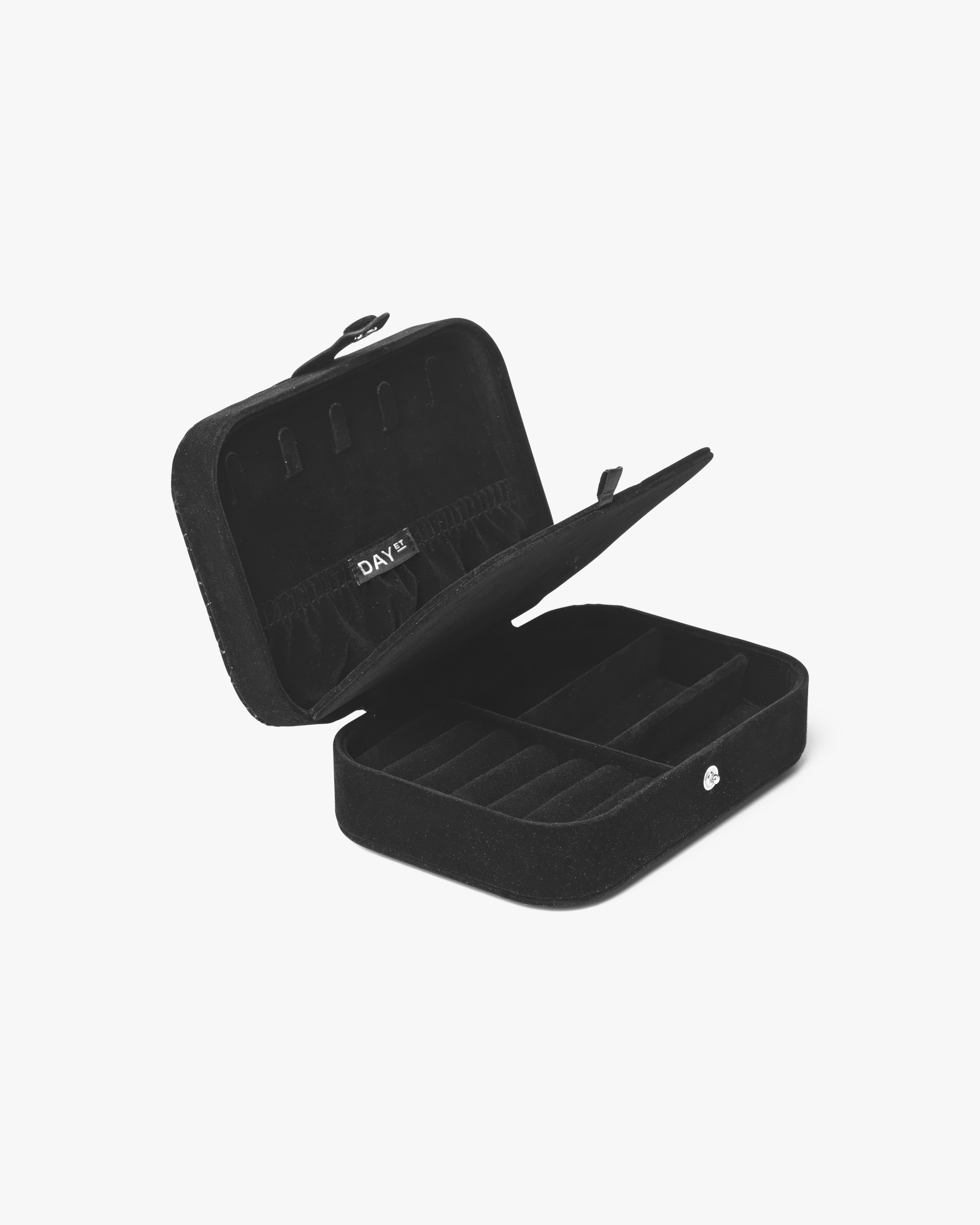 This stunning jewelry box from DAY ET is a beautiful piece to carry all of your precious and loved jewelry either when travelling or at home. It is crafted in soft lightweight material in a velvet look with quilted effect for a luxurious statement. The box is designed in a simple square shape with the DAY ET logo written in gold. It features smaller rooms to store earrings, bracelets or necklaces – and it has smaller pouches designed to store your beloved rings. This piece will safely store your gorgeous smaller accessories when you need them on a trip or to simply add an elegant element to your bathroom. Perfect as gift for a loved one.