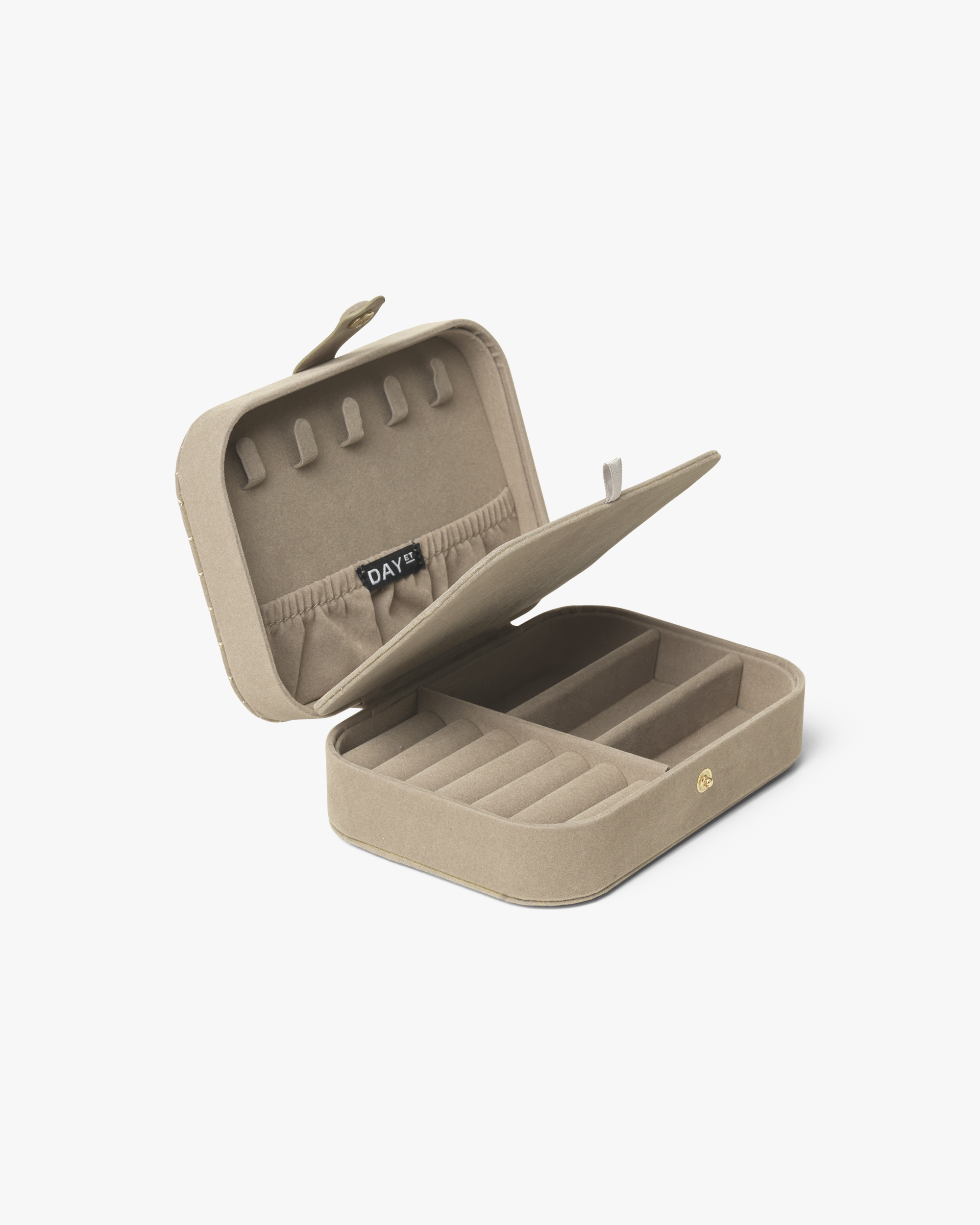 This stunning jewelry box from DAY ET is a beautiful piece to carry all of your precious and loved jewelry either when travelling or at home. It is crafted in soft lightweight material in a velvet look with quilted effect for a luxurious statement. The box is designed in a simple square shape with the DAY ET logo written in gold. It features smaller rooms to store earrings, bracelets or necklaces – and it has smaller pouches designed to store your beloved rings. This piece will safely store your gorgeous smaller accessories when you need them on a trip or to simply add an elegant element to your bathroom. Perfect as gift for a loved one.