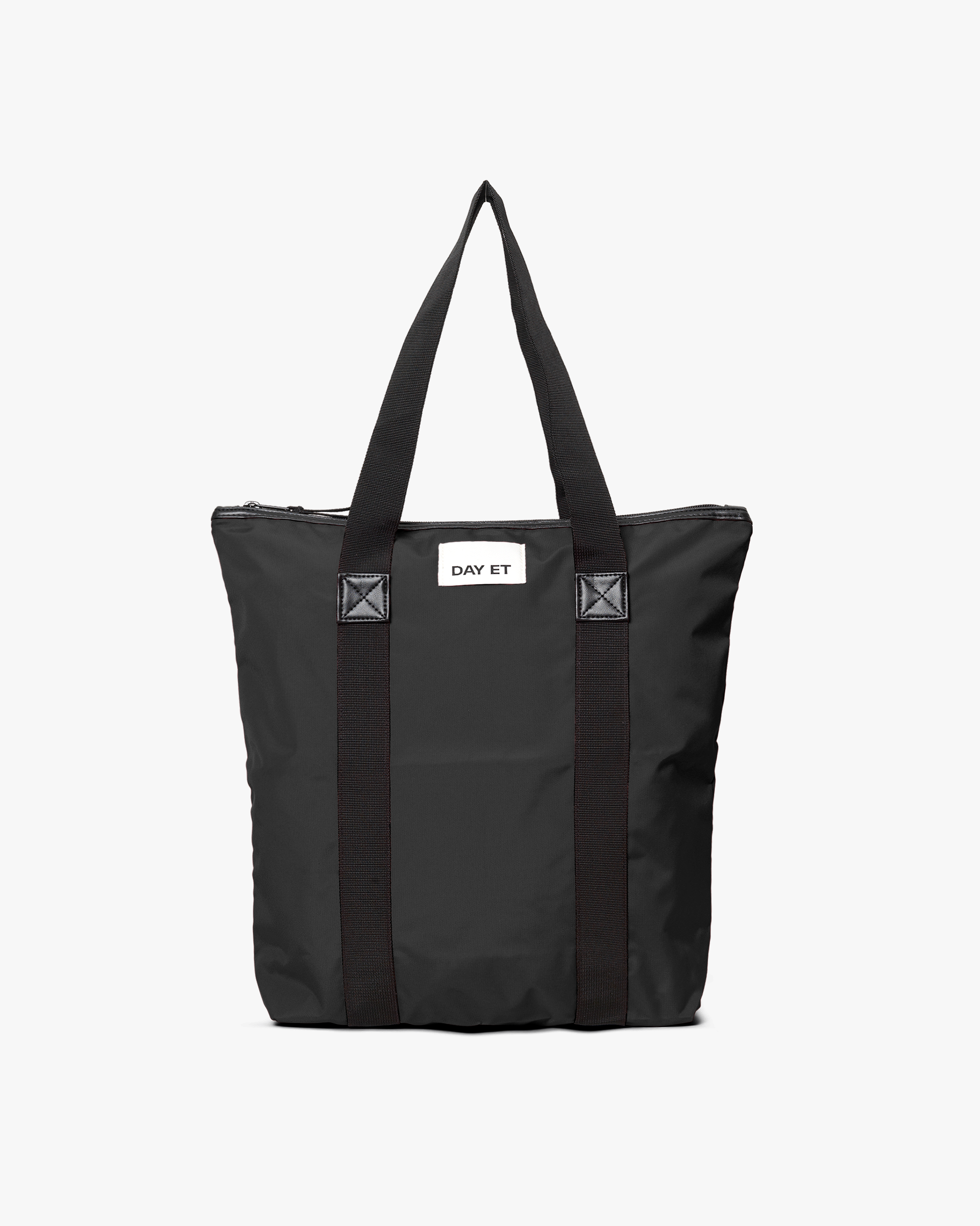 The outer fabric and inner lining of this bag are made of 100% certified recycled material, and it has a capacity of 14.4 liters. The bag closes with a zipper and features an inner pocket with a zipper for storing smaller items.