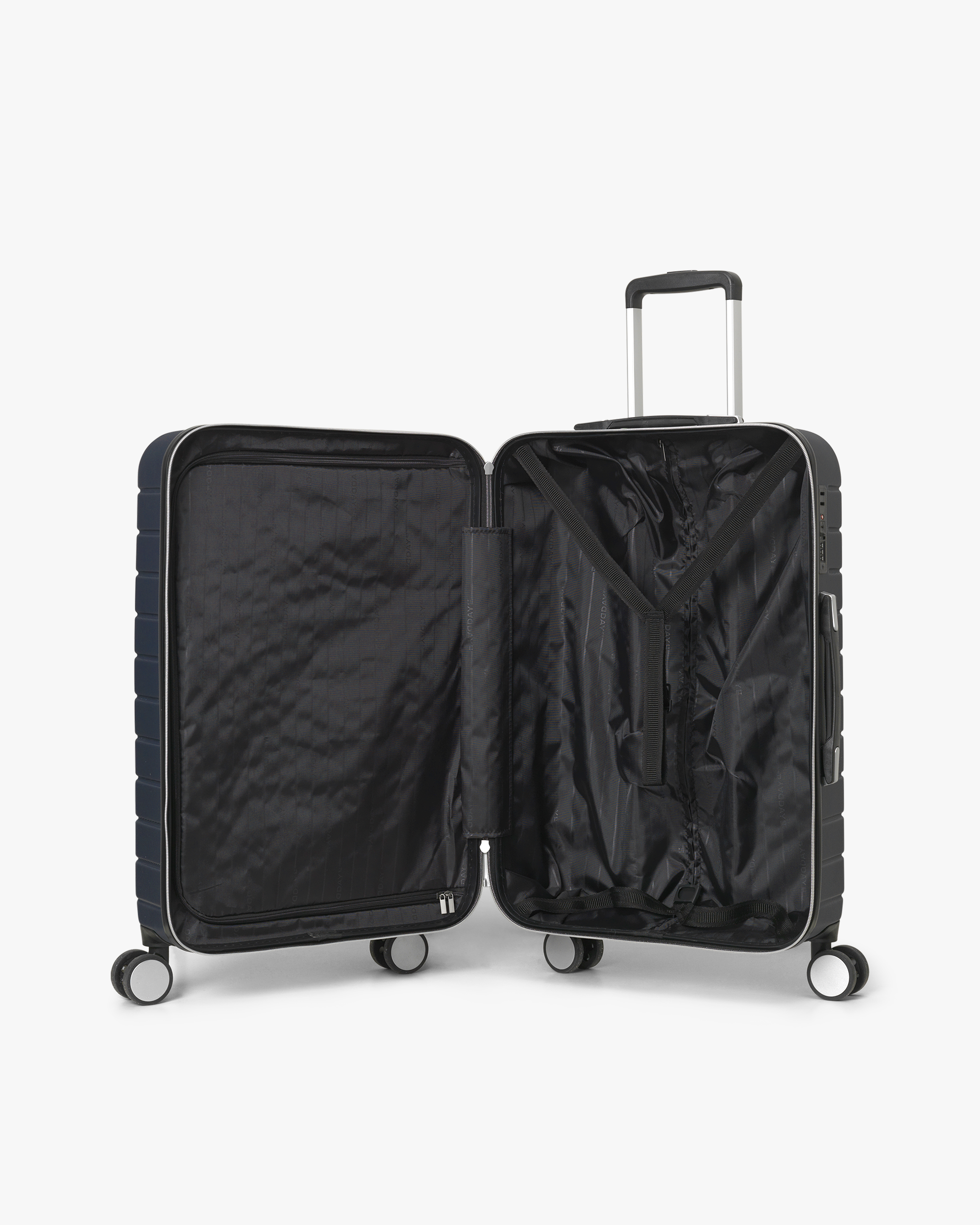 This suitcase is practical, functional and it has a stylish design with silver details. It is easy to carry on the go with its 4 double wheels, that can turn 360 degrees. The suitcase is tailored to accommodate everything you need on the trip, and it is equipped with packing straps and a zipper compartment. It can contain 65 liters, and it is designed in a light hardcase material. This suitcase is equipped with a TSA approved lock, which will give you the extra security when you are on the go.