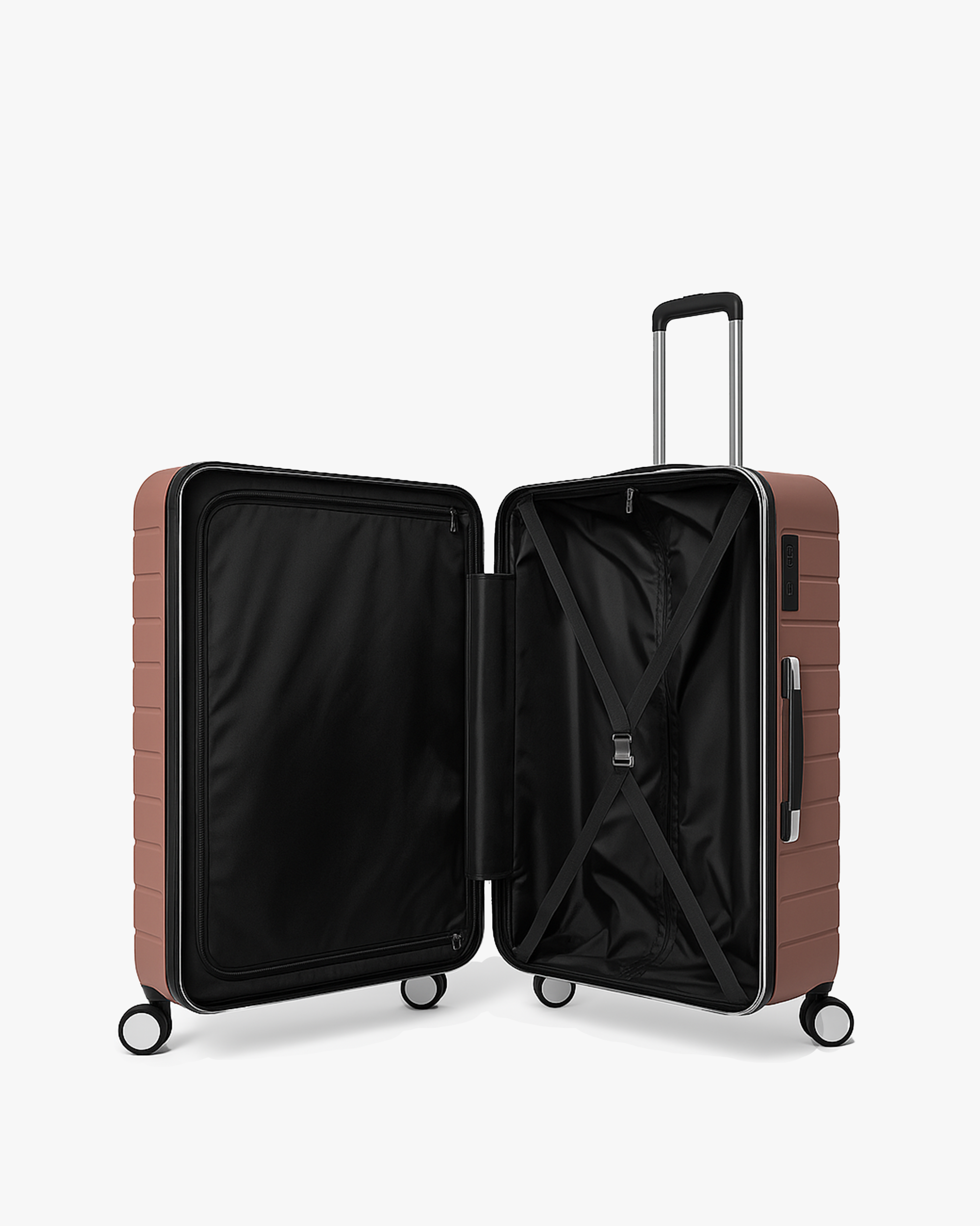 A spacious suitcase made for longer journeys. It includes packing straps and a zipped compartment for easy organisation. The lightweight hardcase and 360-degree double wheels provide smooth movement, while a TSA-approved lock ensures your belongings stay secure. Finished with silver details and the DAY ET logo on the front for a timeless look.