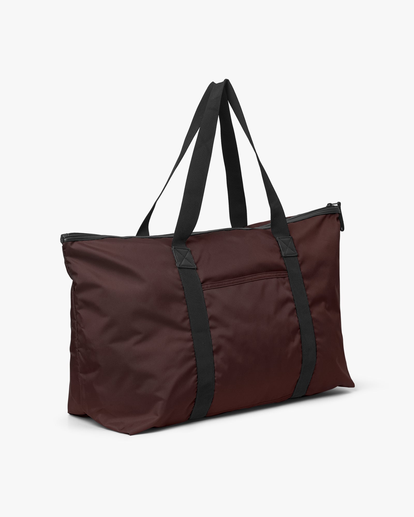 This bag is ideal for a weekend get-away. It has plenty af space for keeping everything you need. The light material is easy to fold and you can easily have it in a suitcase ot in an other bag. The outer fabric and inner lining is made of 100% certified recycled material. The bag is made with an interior pocket, so you always can find your smaller essentials. The long wide straps gives you the best comfort when carring the bag.