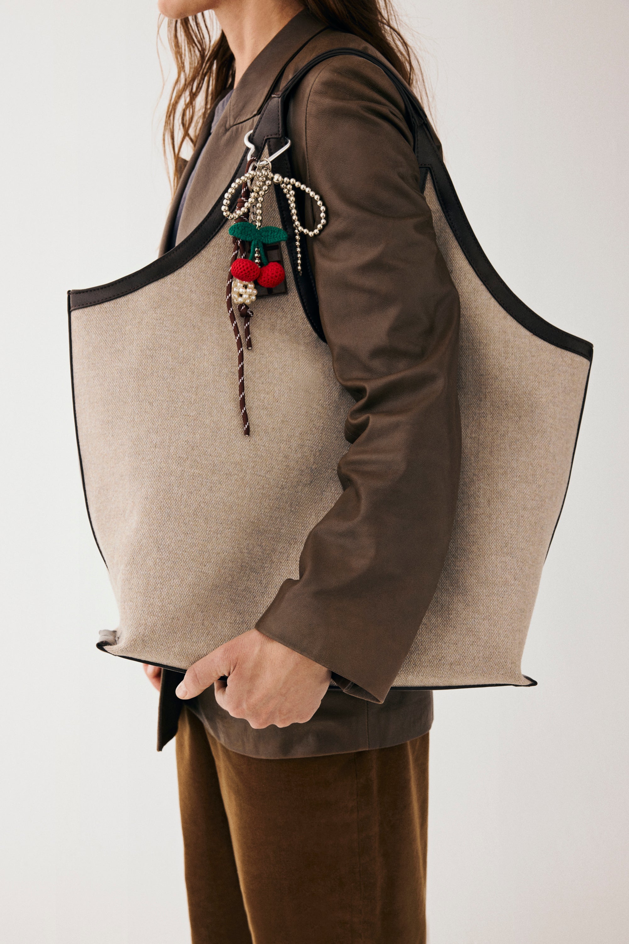 A spacious tote in soft wool with a sculptural and distinctive shape. The reinforced base and roomy main compartment make it practical for everyday use, including space for a 15" laptop. Inside, it features a zip pocket and two open compartments, while the rich Chocolate Plum twill lining adds an elegant finish. A statement piece that’s just as functional as it is stylish.