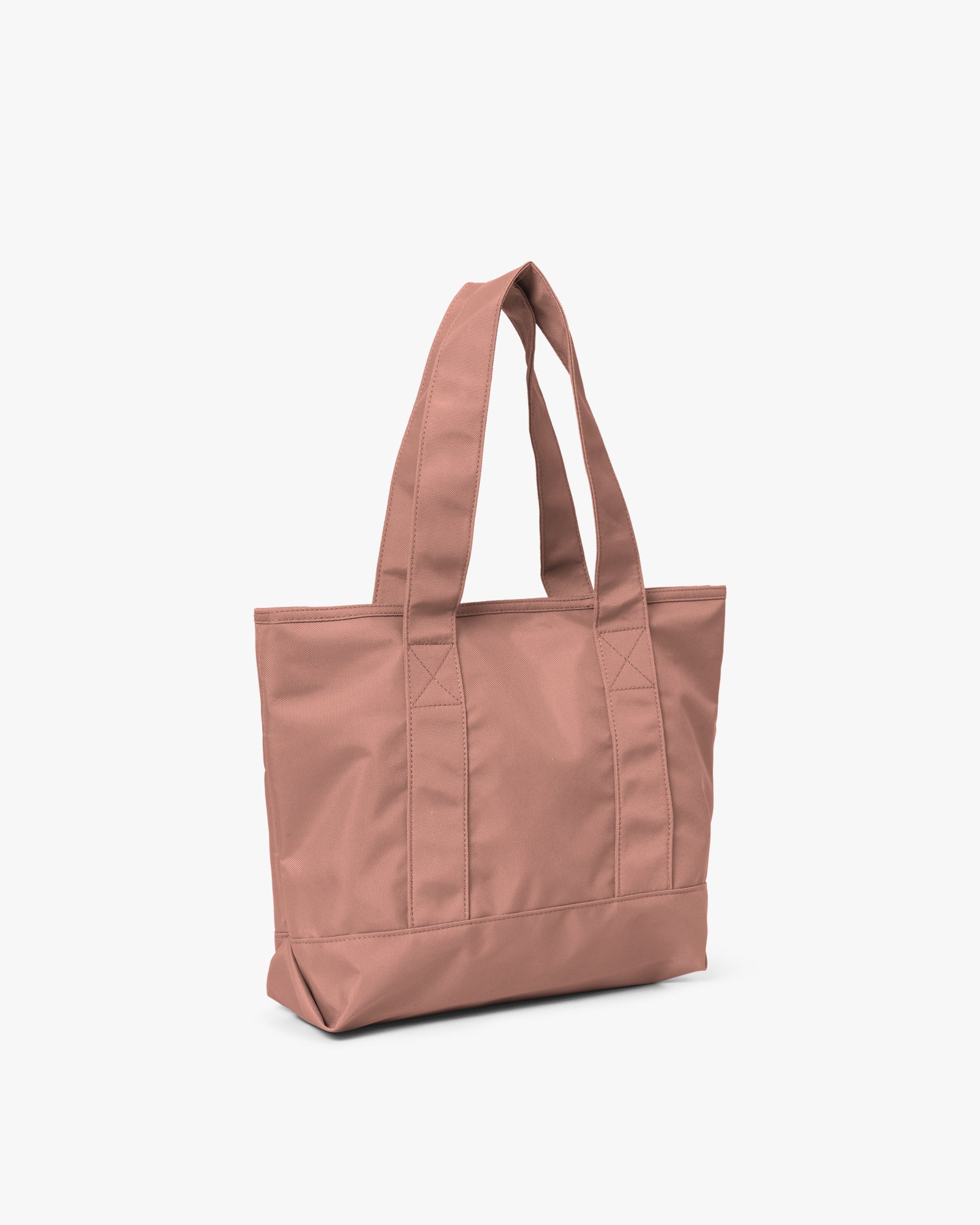 A mini tote designed in uniform material and colour for a clean, understated appearance. It fastens with a press-stud and includes an inner zip pocket for the essentials. A practical choice for days when you only need the basics.