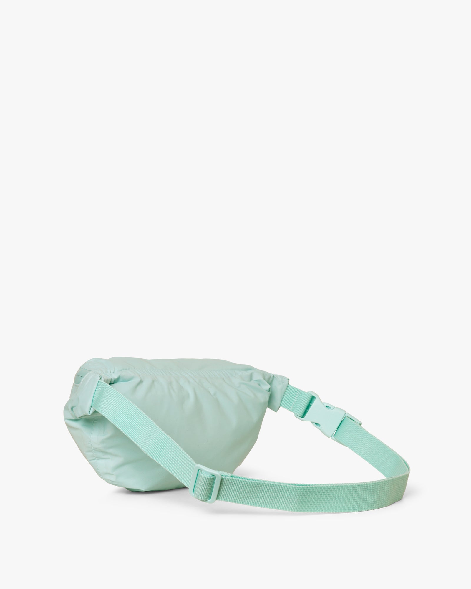 This bag is made from 100% certified recycled, water-repellent material with a water column pressure of 2100 mm. It features a waterproof two-way zip and a zipped inner pocket for easy organisation. The adjustable strap extends up to 100 cm for versatile carrying.