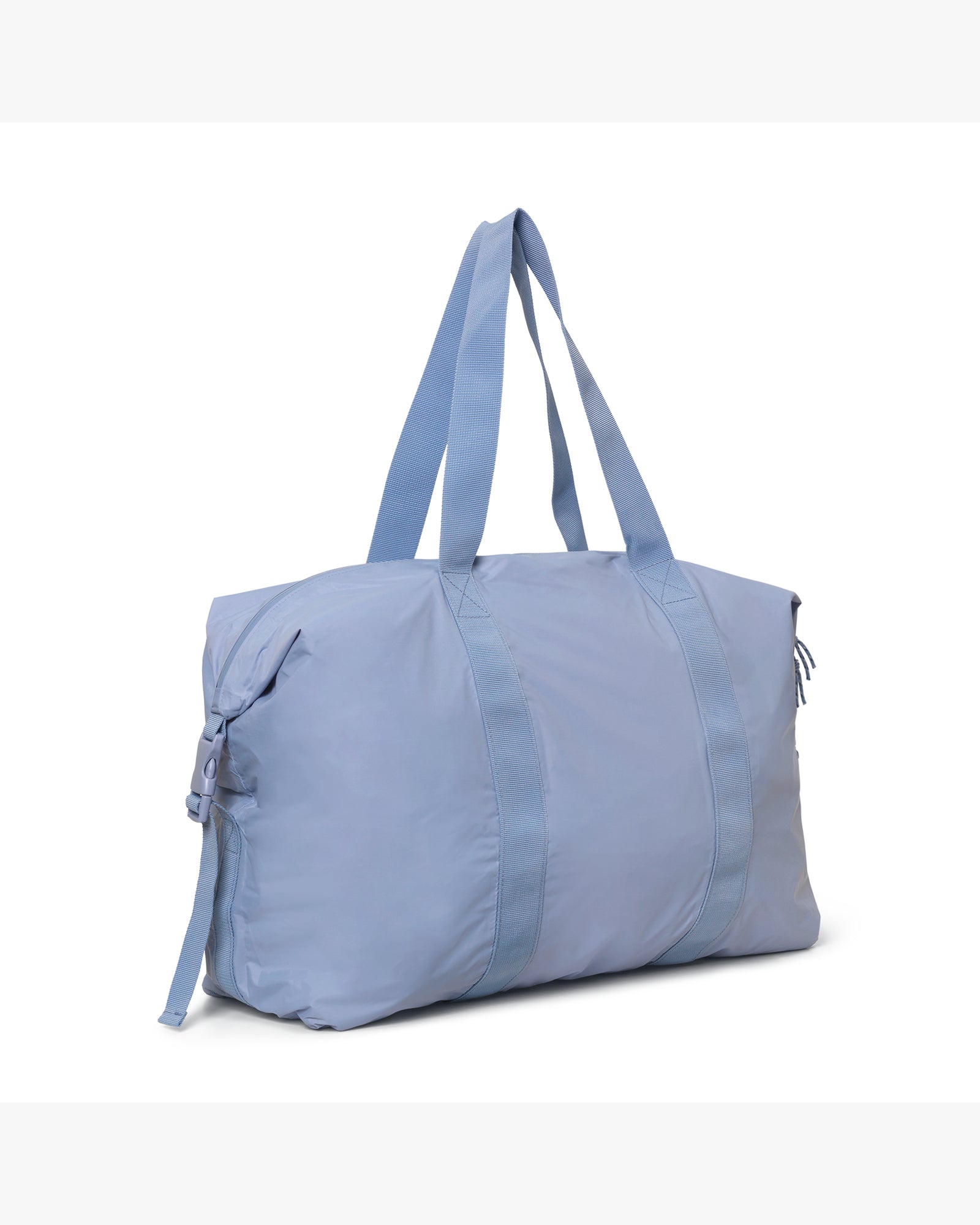 This functional weekend bag is crafted from 100% certified recycled, water-repellent material with a water column pressure of 2100 mm. It has a zip pocket and two mesh compartments inside. The waterproof two-way zip and adjustable side buckles offer flexibility.