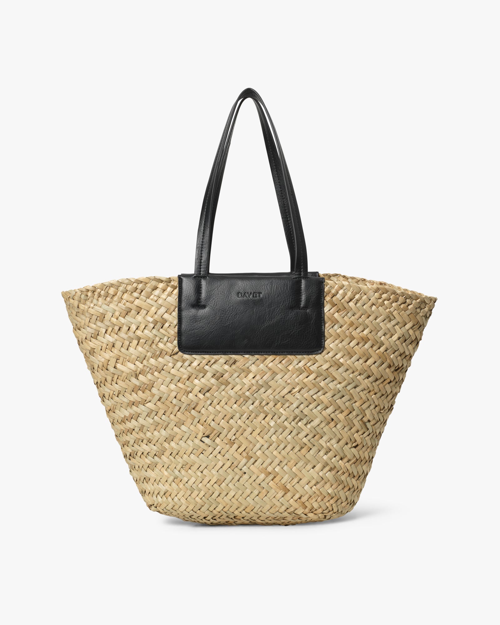 This woven straw basket combines natural materials with elegant leather details. The leather straps make it comfortable to carry, and it features a practical inner leather pocket for storing small items. Its thoughtful design makes it both functional and stylish.