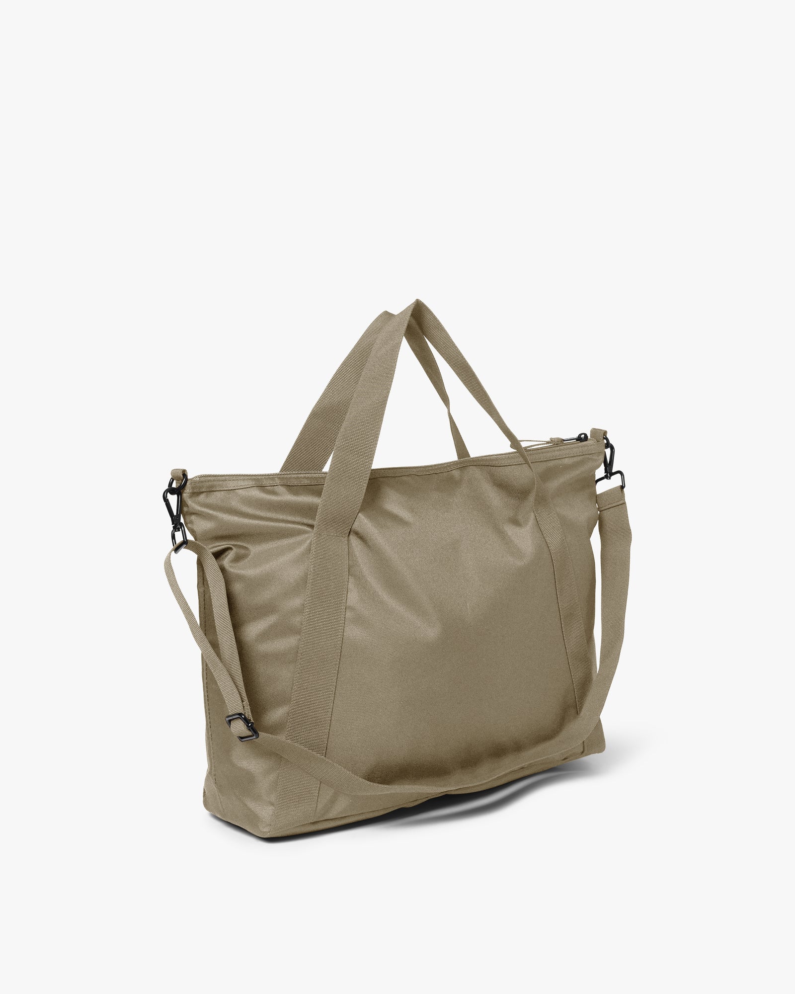 This versatile bag features a clean, tonal design and is ideal for everyday use. The zipped main compartment includes an internal zip pocket for smaller essentials. With two short handles and a detachable, adjustable strap, it can be carried by hand, over the shoulder, or worn crossbody. The outer fabric and lining are made from 100% certified recycled materials.