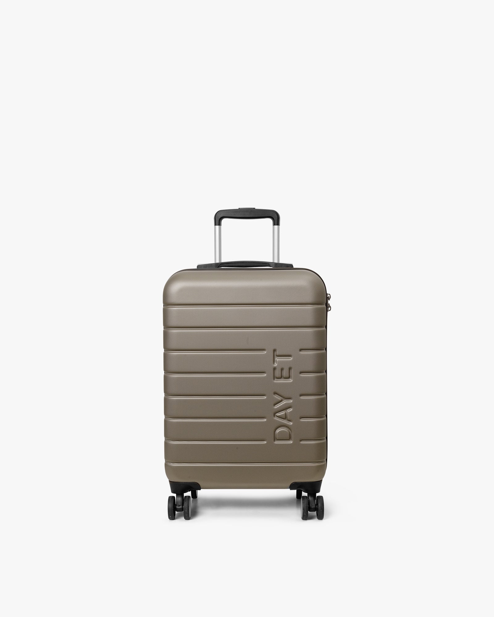 A practical cabin suitcase with room for all the essentials on a short trip. It features packing straps and a zipped compartment to keep your belongings organised. With four double 360-degree wheels and a lightweight hardcase shell, it’s easy to manoeuvre. A TSA-approved lock keeps everything secure. Finished with silver detailing on the zip and wheels, and the DAY ET logo on the front.