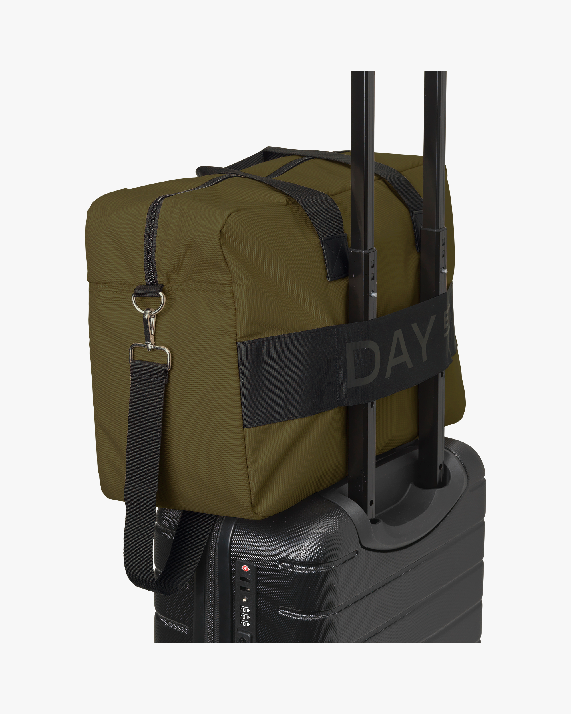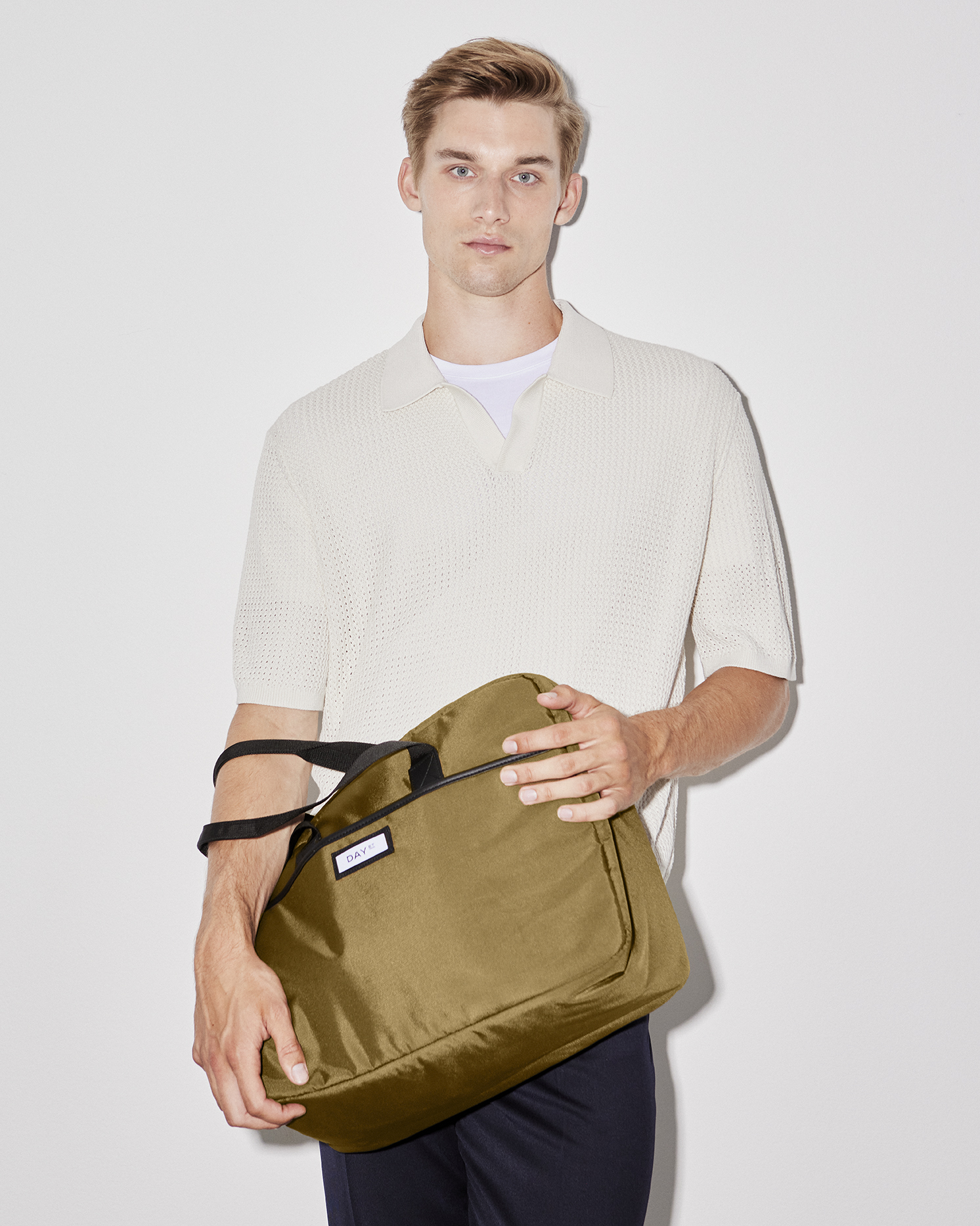 This bag is perfect for a trip or a getaway. The outer fabric and the inner lining is made of 100% certified recycled material. It is closed with a zipper, and in the main compartment there is space for everything you need during for a couple of overnight stays. It has several inside pockets and a outside pocket, so you can organize your stuff. Besides the shorter handles the bag also has an adjustable and detachable strap, so it can both be carried over the shoulder and as a crossbody. It also has a strap on the back, so it can be put over the handle of a suitcase.