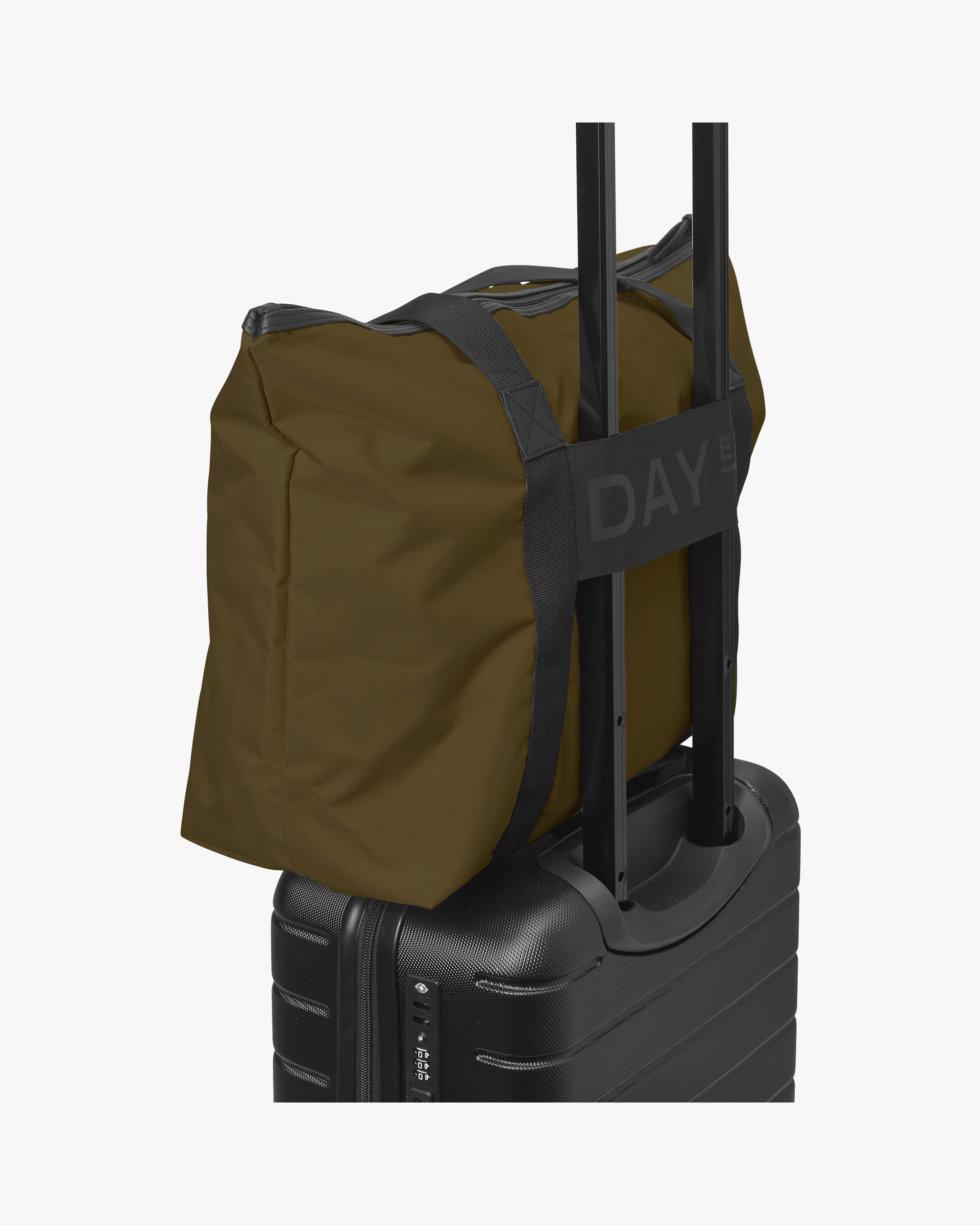 This bag can both be used as a everydag bag or for a trip, and the outer fabric and inner lining is made of 100% certified recycled material. In the main compartment there are space for everything you need for a weekendtrip, and there are also a inside zipper pocket, where you can keep your smaller items. The bag is closed with a zipper, and it has a outside pocket. The bag has long straps, so it is comfortable to carry, and at the back it has a strap, so it can be put over the handle of a suitcase.