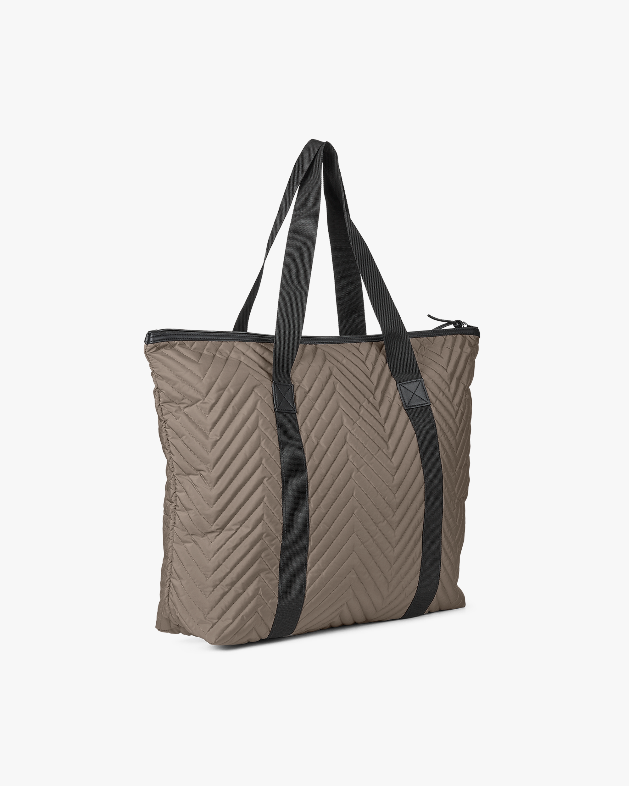 This bag is designed in a quilt, and the outer fabric and inner lining is made of 100% certified recycled material. In the main compartment there is space for everything you need during a day on the go such as your computer. It is closed with a zipper, and it has a inside zipper pocket, where you can keep your smaller items. The bag also has long straps, which make it comfortable to carry it over the shoulder.